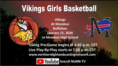 The Northern Light Webcasting Network is once again excited to bring you Colfax Viking Girls' Basketball during the 2025-2026 season. Follow the Viking Girls all season long on YouTube-NLWN-TV.